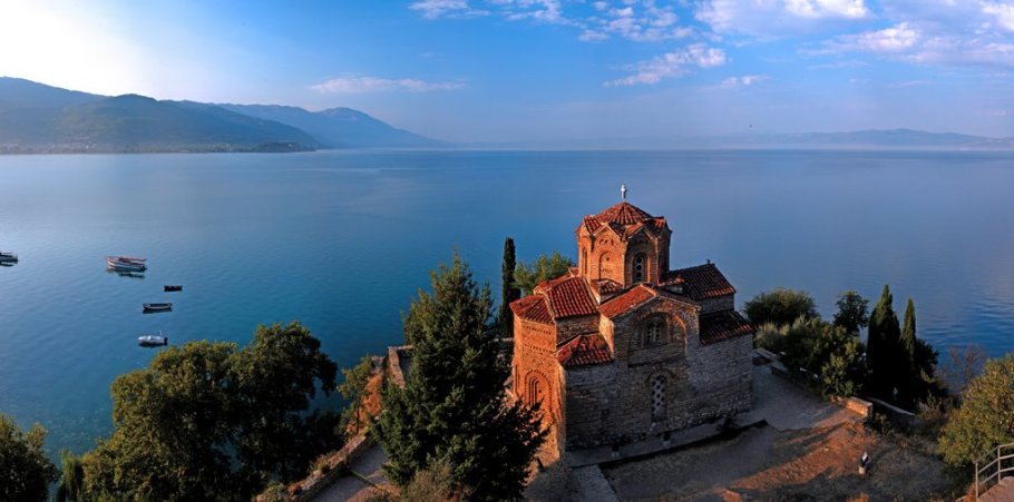 A view of Lake Ochrid (Ohrid), where St. Nikolai composed these prayers during his morning walks in the woods after Matins in the monastery