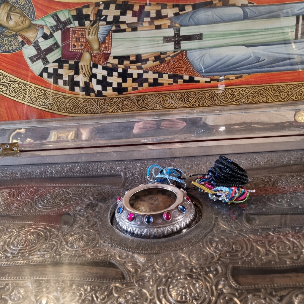 I took the bracelets and komboskini and placed them on the Holy relics of St Lazarus for blessing to give to our children at church.