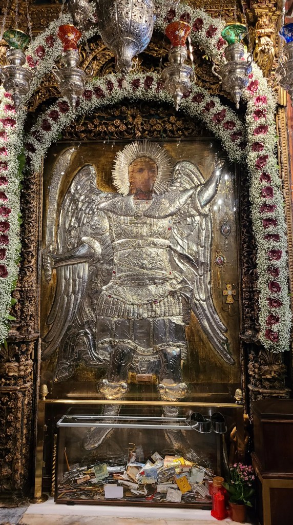 Then, a dear spiritual sister of mine is leaving tomorrow on a pilgrimage to Archangel Michael of Panormitis (Gr. O Πανορμίτης) on the island of Symi, and promised to give our names for commemoration and bring a copy of that miraculous icon of the Archangel Michael, one of the most famous miraculous icons of the Archangel in Greece.