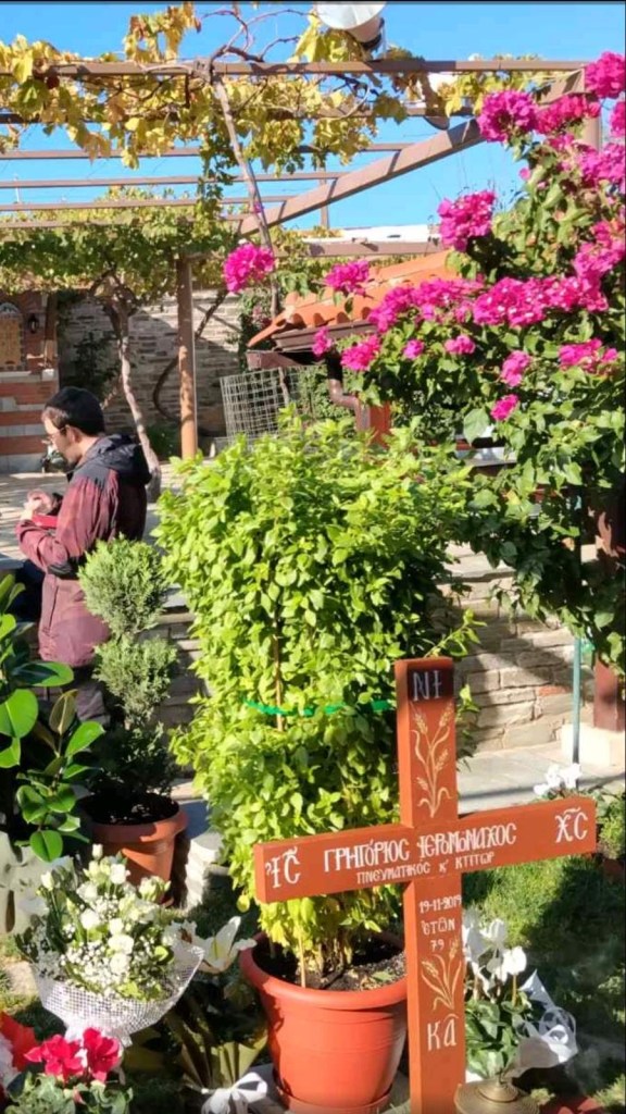 The good God, wanting to rest the good shepherd and His faithful steward, called him to Himself after a sudden stroke on November 19, 2019. The funeral service and burial were held on November 21, the day of the Feast of the Entrance into the Temple of Our Most Holy Lady the Theotokos and Ever-Virgin Mary, the birthday of the Monastery, when 45 years ago Saint Paisios gave the blessing and the command to Father Gregory to begin the great work for which he sacrificed his life.” (Ραδιοχρηστότητα, by his spiritual son and priest Father Nikolaos at St. Palnteleimon, Mesimeri )
