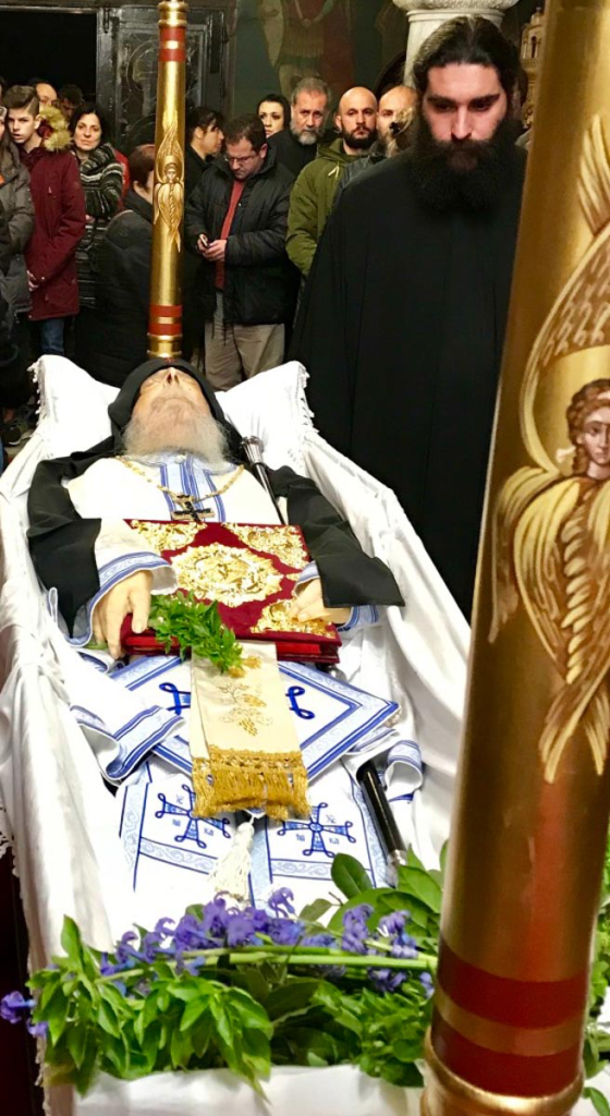 On Thursday, February 8, 2018, at 5:30 AM, the renowned elder and spiritual father Nektarios Vitalis, the elder of Saint Athanasius Monastery in Kouvaras, reposed in the Lord. I wrote about his holy life in a previous post. Today I would like to share with you a miracle which took place on the day of his funeral, February 9 at the Monastery of Saint Athanasius, sealing a life full of heavenly visitations. The Youtube video which follows, shows, from 1:38onwards, how his corpse is not stiff (ie. rigor mortis) but shows signs of flexibility, as if he were only sleeping. Pay attention to how a spiritual child of his fondly kisses and gently caresses his Gerondas’ hand, seeking his final blessing. God is glorified in His Saints!