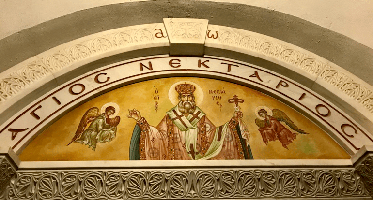 “He began with reverence to embrace all the holy relics as the church care-taker showed, except for the relics of St. Nektarios, which he passed over….