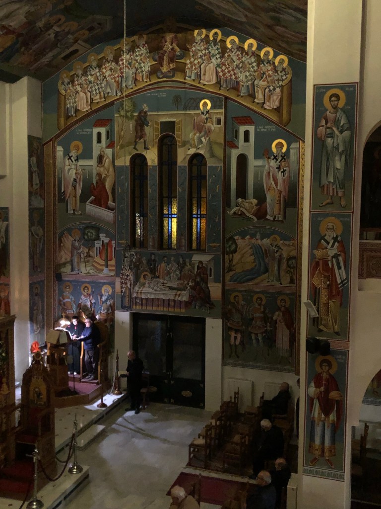 Vespers Holy Liturgy in church and the visit of our new Bishop Philotheos. Such a humble and full of God’s love this Bishop he is! He discreetly emerged from the Royal Doors and joined us, chanting and blessing us- no special ceremony! Such a beautiful, brief homily and chanting! May the Lord richly bless him! We all wanted to stay all day, every day, with him!
