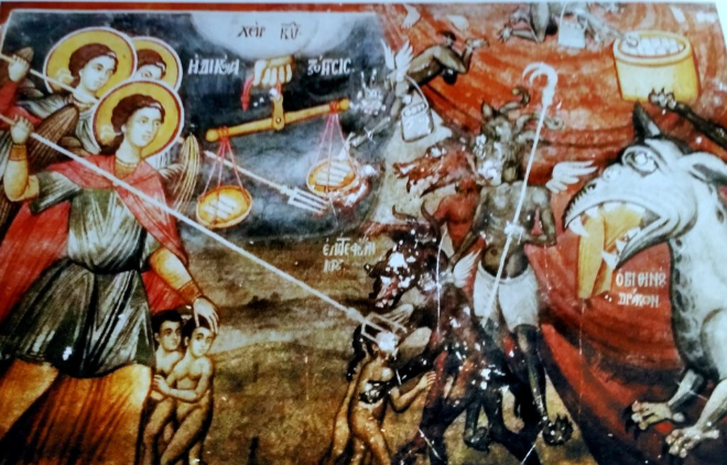 “… From the moment the soul leaves the body and until the third day is completed —counting with our own earthly time, because the soul does not experience time, unlike us who both measure and experience it— the soul passes through the aerial toll houses during this three-day period. As the demons fell at the words of Archangel Michael “Let us stand aright!”, some remained in the highest layers while descending and remained in the air… These are the so-called aerial toll houses. (1)