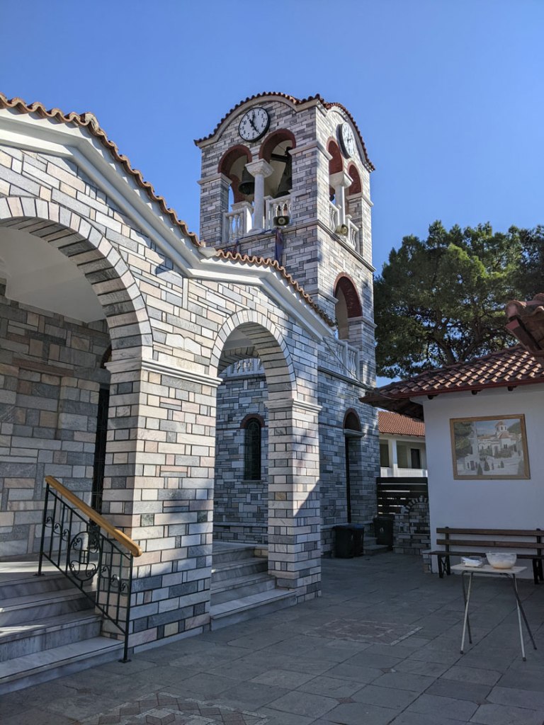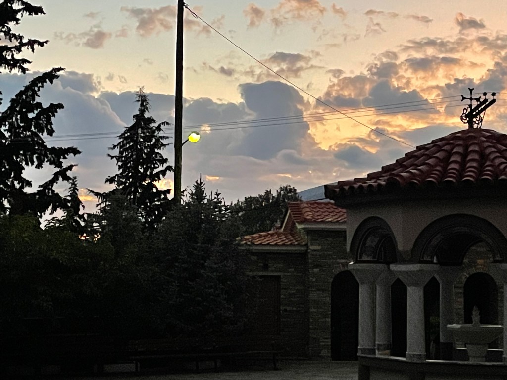 Sadly, the time for my departure has arrived, but I am not leaving alone. I have to drive two university students first to the church of St. Demetrios, and then one of them to the airport for Cyprus. Glory to God for all things! What an amazing synodeia! The family of one of these two students I am offering this drive has 10 children (!), her father is a priest and a teacher, and their mother comes from a family of … 13 children! They have all moved from Athens to Metamorfosi and build their house here to live next to the monastery, together with all their nephews, children and grandchildren.