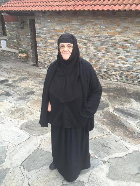 “… Gerondissa Porphyria has always been so full of love and humility, always ready to sacrifice her ease, her rest and sleep, everything for her ‘neighbour! How many times has she consoled me in the trials and tribulations of my life! Always by my side, always! How many times has she offered a shoulder to cry on and precious, practical counsel! Her prayerful presence is intensely, intimately felt even thousands of miles away, here at the UK, and her smile warms my heart. Oh, just look at her smile in the photographs below with a pilgrim at the monastery and imagine the rays of the sun warming your shoulders after a rainy, cold day! How blessed am I to have such a spiritual mother by my side! Over the years I got better acquainted with the friendly and hospitable nuns there and the pilgrims and the faithful who regularly visit this monastery. St. Georgios’ holy presence is immediately felt upon entering the monastery gate, and there is always a queue at his tomb where his spiritual children kneel before their spiritual father, now in Heaven, to ask for his spiritual guidance and to seek comfort in life’s trials and tribulations. …”(9 Nov, 2016)