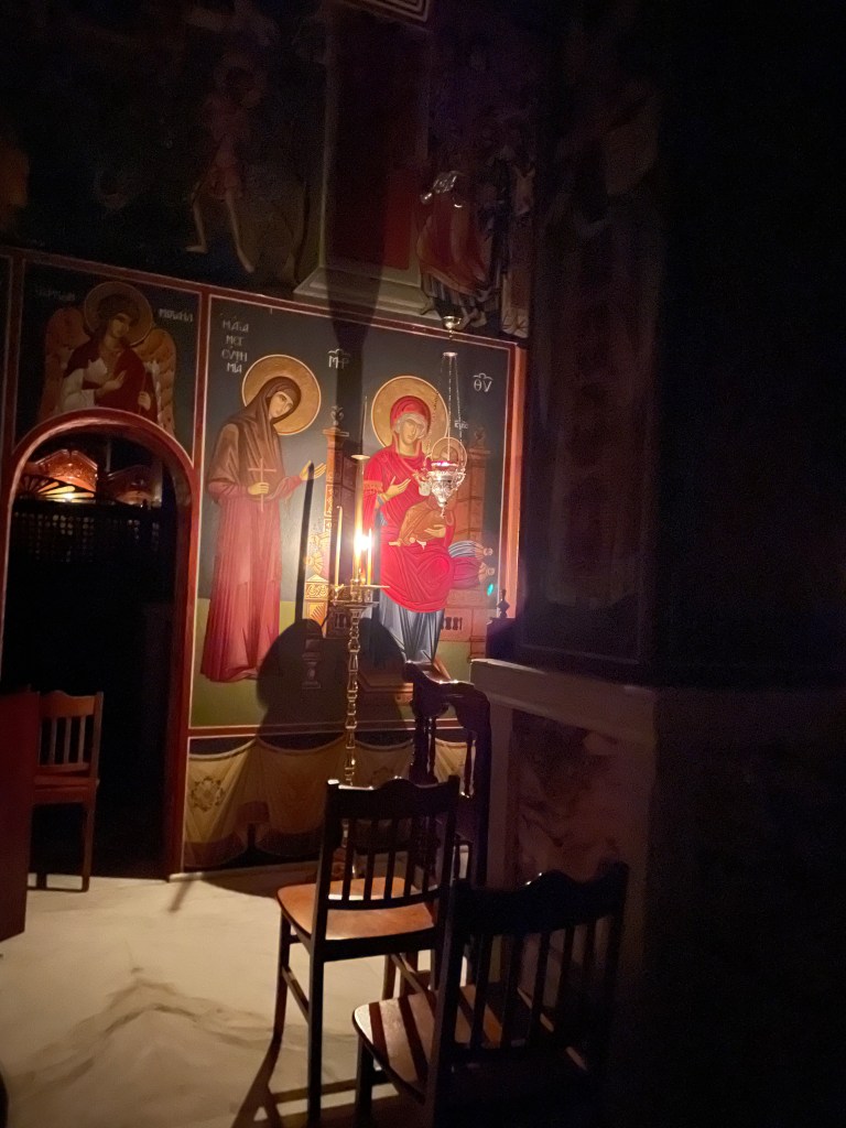 One can”feel” their asceticism even in their etherial chanting. Indeed, an ascetic hue to the spectrum of light explored so far on my way of a pilgrim. And so “hidden”! Adding a wholly empirical dimension to the verse “our lives being hidden in Christ!” So very different to my previous two pilgrimages to Dormition monastery in Panorama and St George Karslides monastery in Sipsa. Such a humbling experience! Probably because of all this most demanding typikon, this monastery has the least pilgrims or faithful attending, even when its gates are open. As to the sisters, they humbly believe that they they are useless, lukewarm, “end of times” monastics, not honouring their calling.