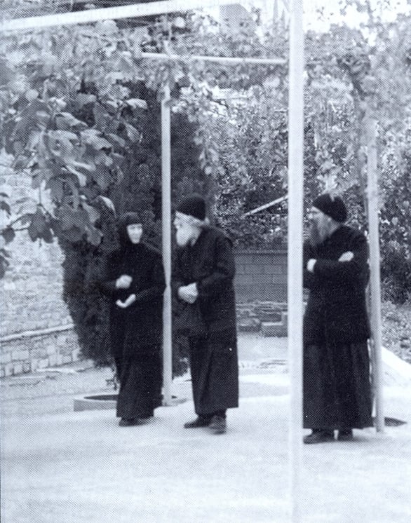 St Paisios, + Gerondissa Euphemia and Sister Paisia, looking at the camera behind Gerondissa. I had the privilege to spend quite some time during my stay here with Sister Paisia.