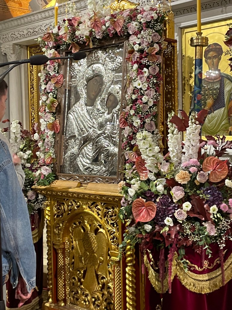 St. Demetrios ‘Christ is Risen’ variation–“Χριστού την δόξαν μαρτυρεί/ πηγάζων εκ πλευράς τα μύρα/ ο μάρτυς Δημήτριος ˙/ αυτόν μεγαλύνομεν». “St Demetrios bears testimony to Christ’s Glory/ gushing myrrh at his side/ him do we glorify”