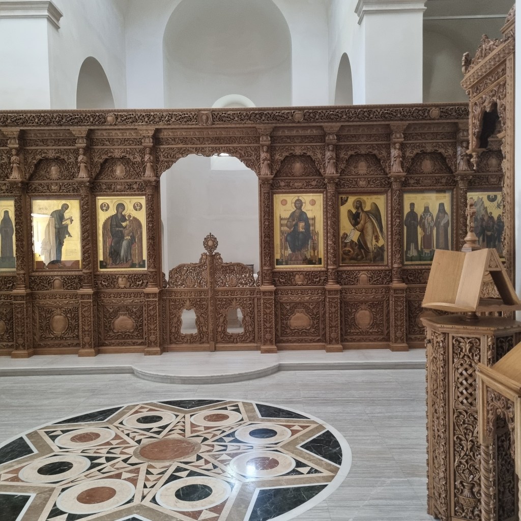 A beautiful Monastery is next to the fields where St Spirydon kept his sheep and goats. They are building a new church made completely of stone. A stone cutter was working whilst we were there.