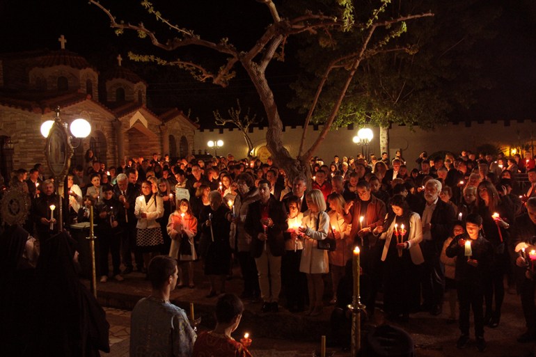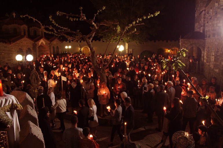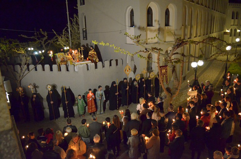 Holy Saturday and Sunday of the Resurrection, Liturgy of the Resurrection (Anastasis), Midnight Paschal meal, and Processions at Sts Augustine and Seraphim Sarov Monastery at Trikorfo, Greece