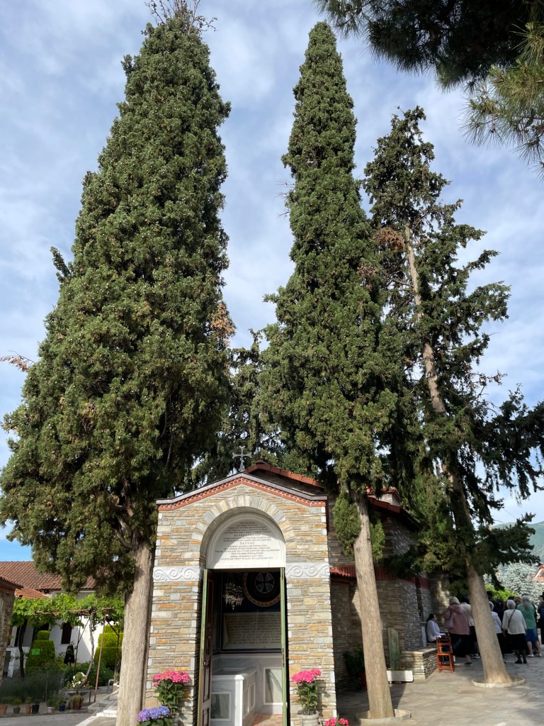 Indeed, for centuries, Middle Eastern and European cultures have revered the cypress as a symbol of the transition between life and death, with cypresses symbolizing the uplifting of the human spirit and the possibilities of eternal life. So many poems have been written about them by poets and philosophers. Cypresses are even discussed in Gerontikon (see below). But such participation of Nature in a Saint’s life is of an entirely different level.