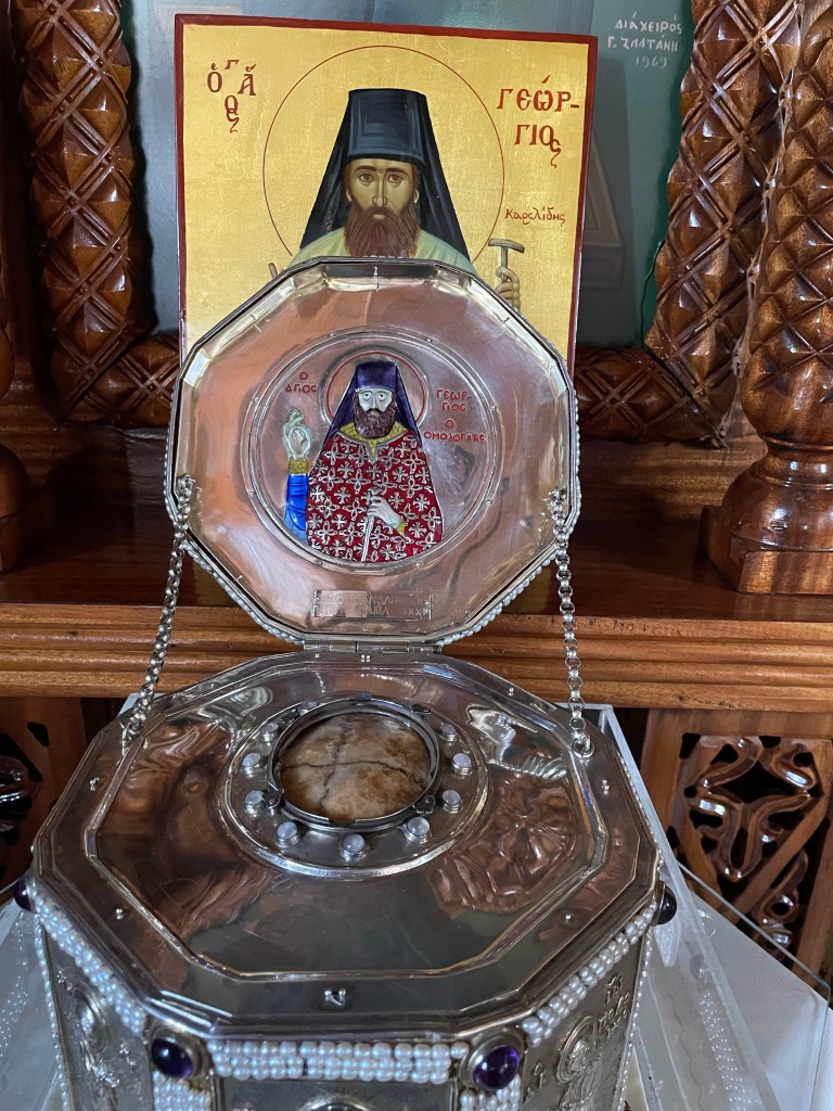 St. George last words were “Open to me the gate of loving-kindness, blessed Mother of God”. His dead body was supple, just said the case of those on the Holy Mountain.The two cypress trees at his grave bent, as though in veneration, as he had foretold, and lots of birds gathered at the time of his burial, with no fear of the large crowd of people. Everyone felt, was certain that they were burying a Saint.